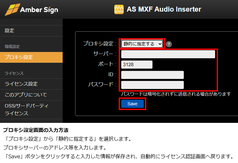 (注)以下の環境では「プロキシ設定」のリンクをクリックし、プロキシサーバーの情報の登録が必要です。