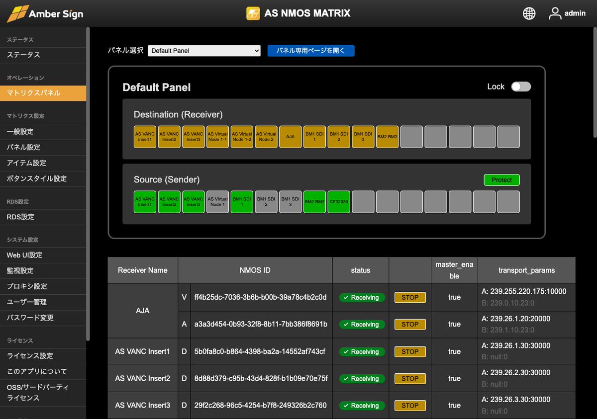 AS NMOS MATRIX は簡単に運用開始できる純国産のST2110用ブロードキャストコントローラーです。