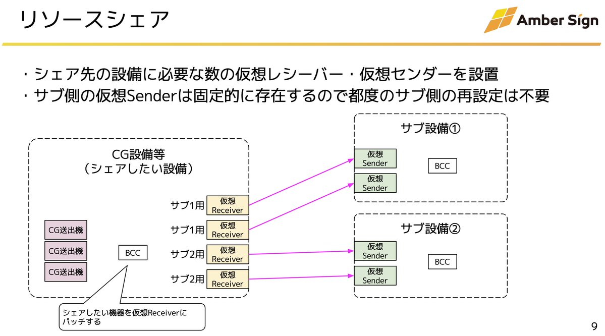 MoIPのリソースシェアや設備間の映像の受け渡し制御をスムーズに行うことが可能な AS NMOS Link Node System は、 仮想レシーバーと仮想センダーを連携させる弊社独自の特許技術を使用。