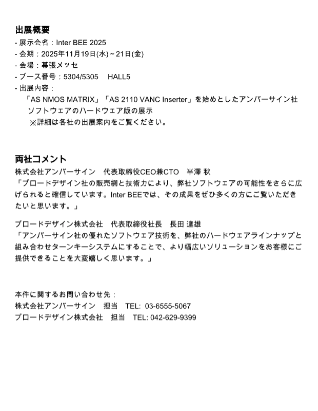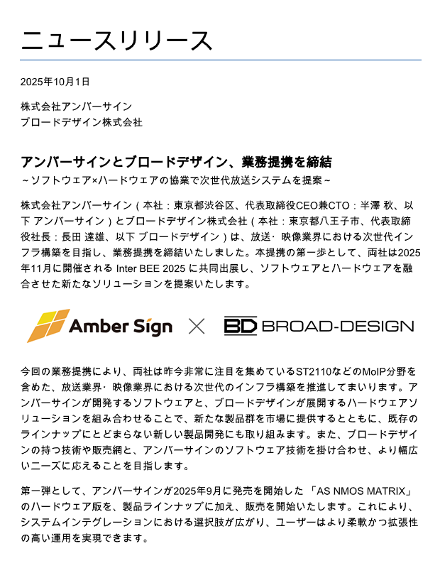 第一弾として、#InterBEE2025 に共同出展し、「AS NMOS MATRIX」のハードウェア版を販売開始いたします!
