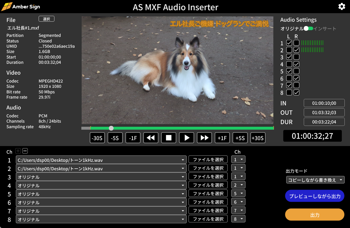 AS MXF Audio Inserterは、MA室でお使いいただける音声差し替えソフトです。movファイルにも対応。